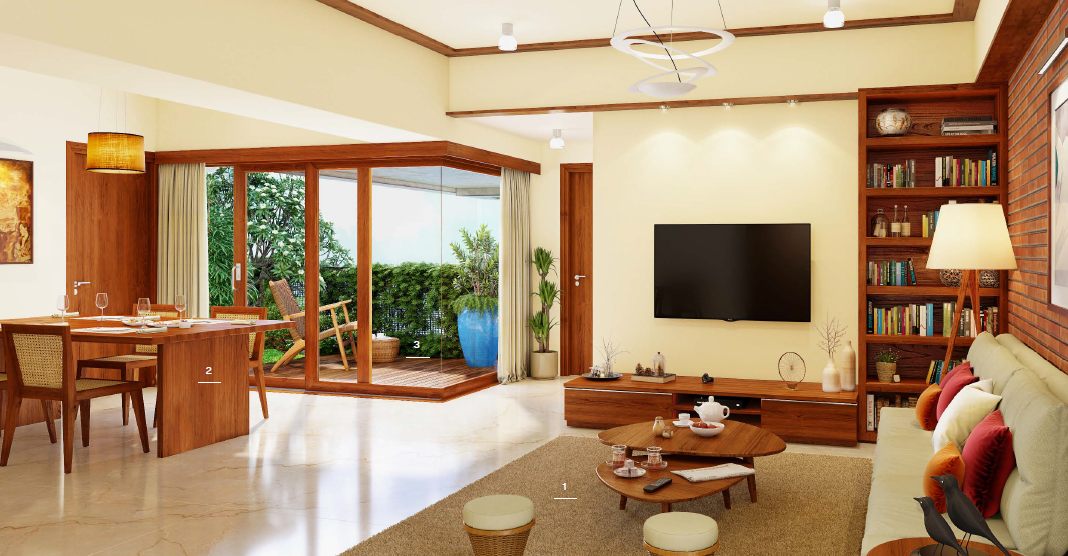 Spread over 37 acres, the project has been designed with a boardwalk along the lake. The project includes our signature earth-sheltered villas & larger lake-facing apartments stepping back from the lake with open-to-sky gardens. With several hundred trees in the campus, earth-sheltered roofs over the villas and terrace gardens with every single home, we expect the microclimate within the project to be a little better than the outside. The inviting cobblestone streets around the homes are carefully planned to encourage pedestrians, discourage high-speed vehicular traffic, and enhance universal accessibility.